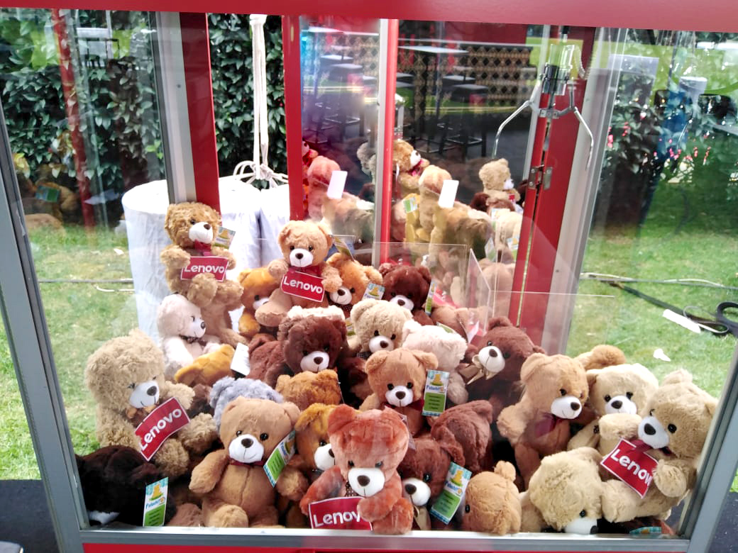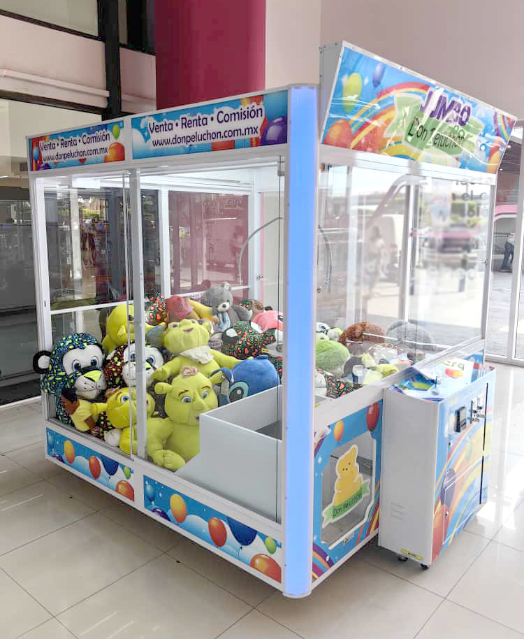 Renta tu máquina cazapeluches JUMBO para tu evento, fiesta o activación. Dáles a tus asistentes la oportunidad de ganar peluches gigantes de hasta 1 metro!