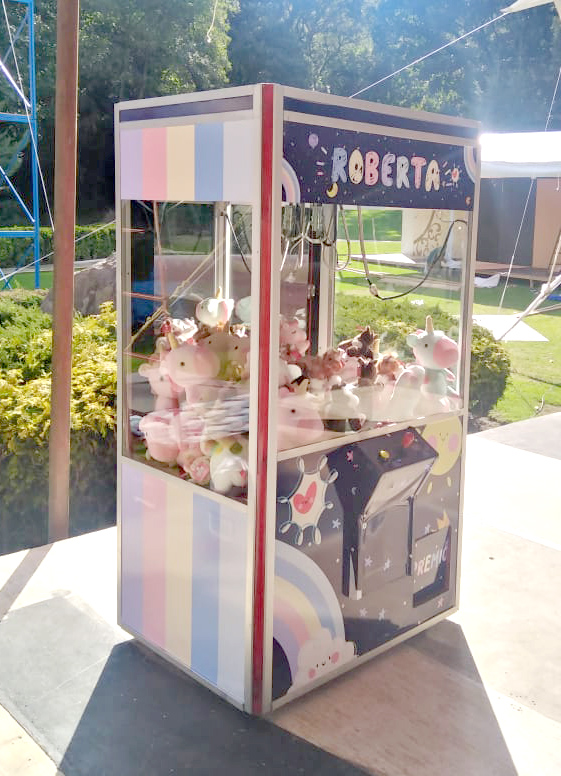Una manera llamativa y divertida de consentir a tus invitados en tu próximo evento, nuestras máquinas caza peluche pueden ser vestidas con el diseño que tu requieras.